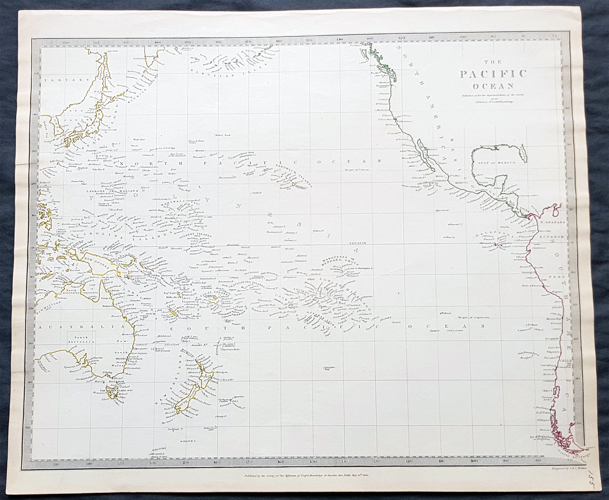 1840 SDUK Antique Map of The Pacific Ocean, North America, Japan