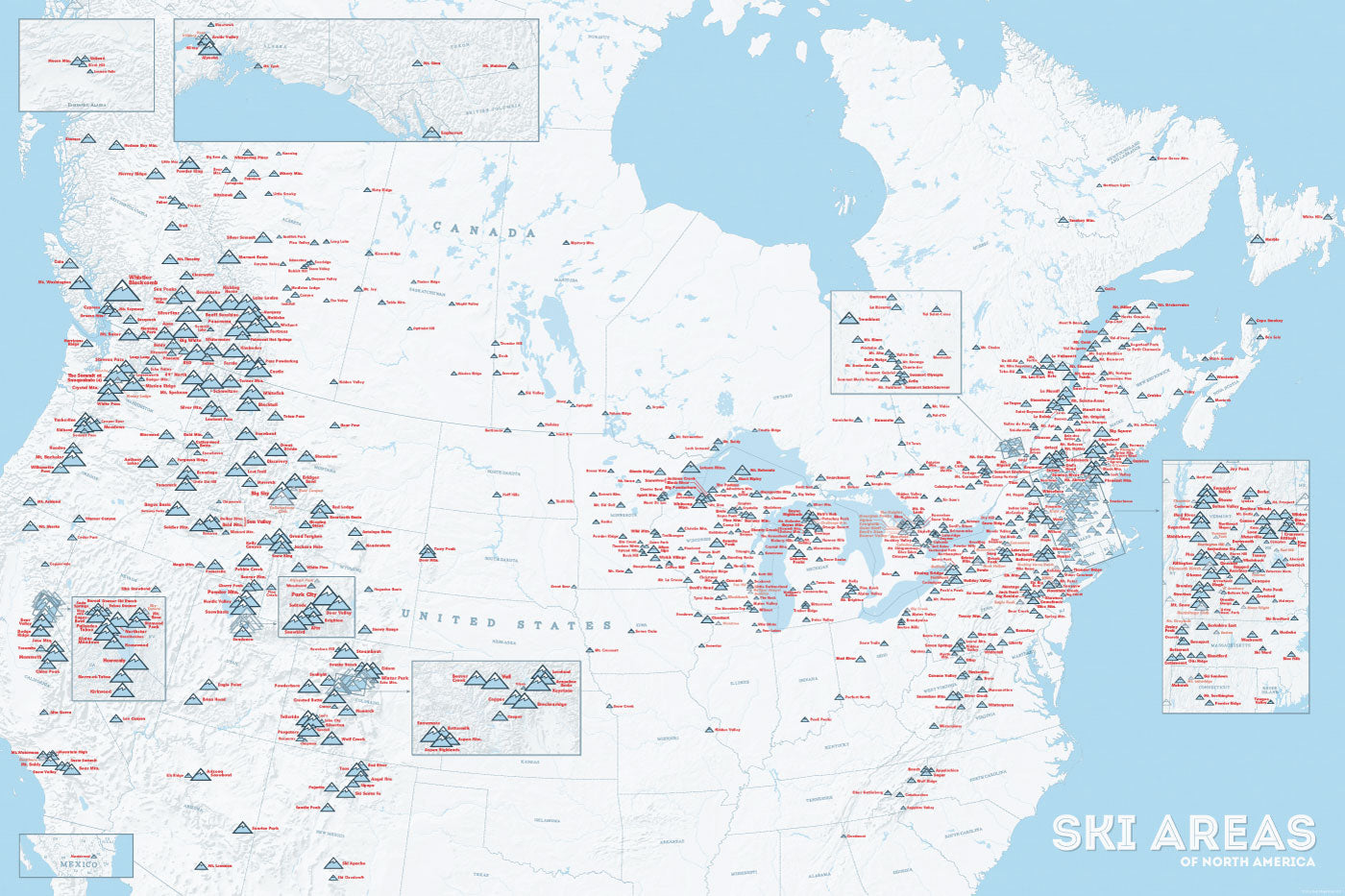 North America Ski Resorts Map 24×36 Poster Best Maps Ever