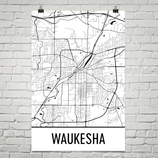 Waukesha WI Art and Maps โ Modern Map Art